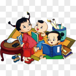 蓝色短袖灰色短裤女孩读书大大书本扁平风格