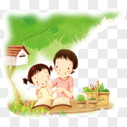 卡通手绘孩子阅读看书素材