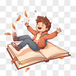 卡通男孩坐在书本上免抠元素