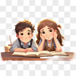 卡通男孩女孩坐在书本上免抠元素