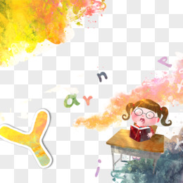 卡通手绘教育开学季培训看书儿童读书开学季插画元素