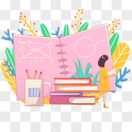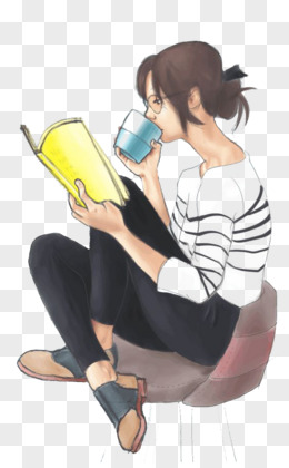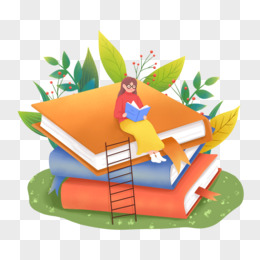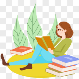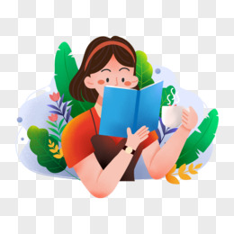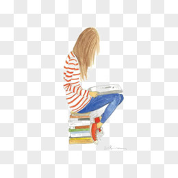 蓝色短袖灰色短裤女孩读书大大书本扁平风格
