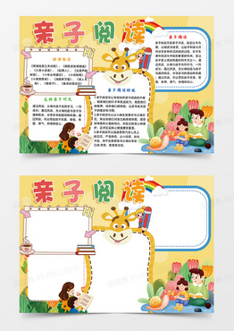 黄色卡通亲子阅读卡通小报手抄报小报读书手抄报