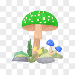 手绘卡通粉蓝色毒蘑菇免抠素材