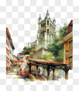手绘俄罗斯圣彼得堡地标建筑免抠元素