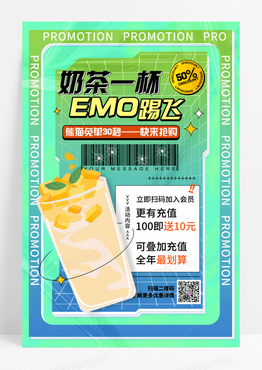 渐变绿色酸性奶茶一杯EMO踢飞奶茶宣传海报