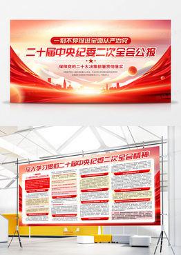 党建二十届二次全会公报会精神学习解读双面展板设计
