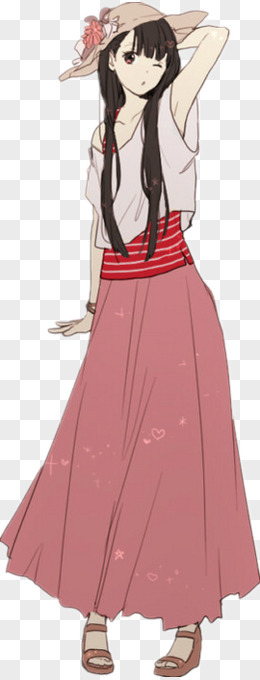 手绘二次元卡通动漫手绘插画女孩背影素材