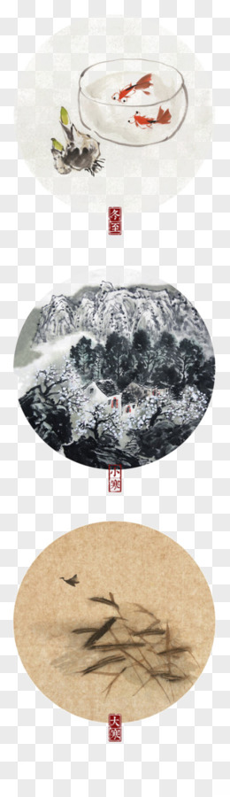 手绘池塘锦鲤和荷花夏季国潮微景观素材