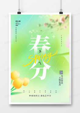 卡通清新可爱儿童春分二十四节气放风筝元素