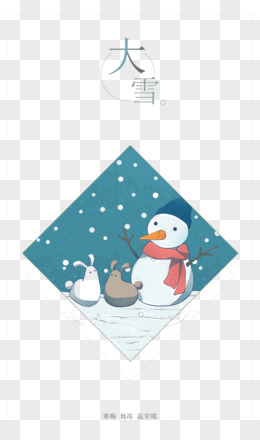 手绘卡通大雪节气孩子户外堆雪人场景素材