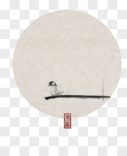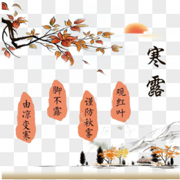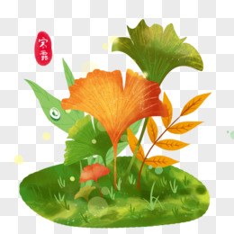 手绘写意插画风白露节气冷色调植物和蝴蝶元素