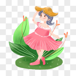 卡通手绘女孩放大镜观察昆虫植物场景元素