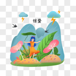 卡通简约清新女孩元素二十四节气惊蛰元素