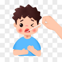 手绘小男孩喉咙痛检查喉咙免抠元素