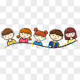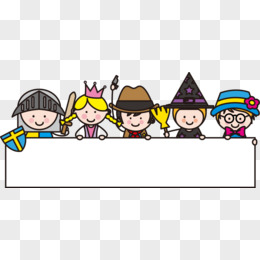 手绘草地上可爱儿童排列卡通标题免抠元素