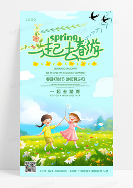 大气绿色卡通儿童踏青春天春季踏青春游海报