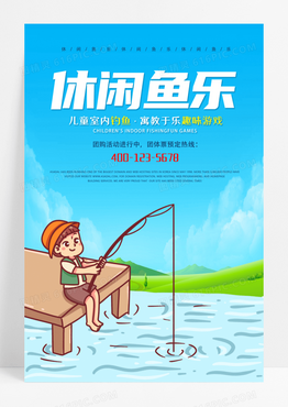 卡通儿童坐在大鱼身上钓鱼玩耍