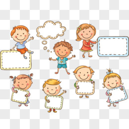 手绘草地上可爱儿童排列卡通标题免抠元素