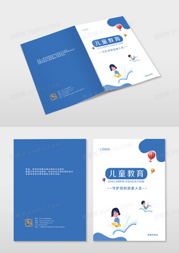 蓝色儿童学习飞翔书籍卡通儿童教育画册封面卡通封面教学设计封面