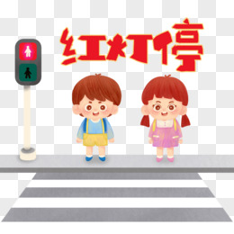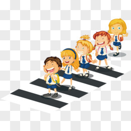 一组手绘卡通中小学劳动课程插画套图之扶老人过马路免抠元素