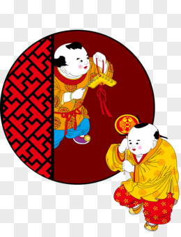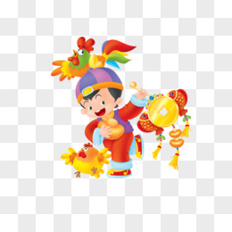 儿童绘画风新年元素装满红包和金币的礼盒免抠元素
