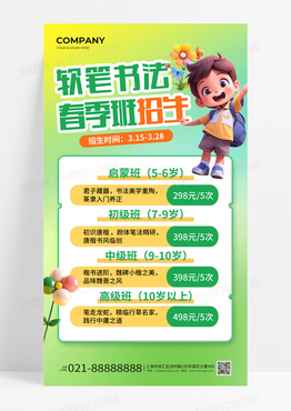 绿色春季书法兴趣班儿童花朵创意广告海报
