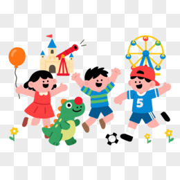 快乐儿童与恐龙玩偶扁平插画元素