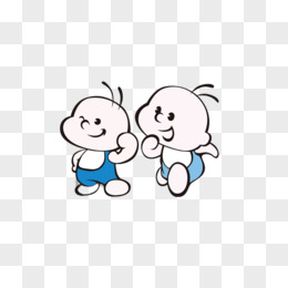 卡通手绘两个可爱的小朋友玩热气球免抠元素