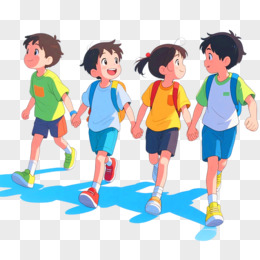 卡通手绘少数民族小朋友转圈玩游戏免抠元素