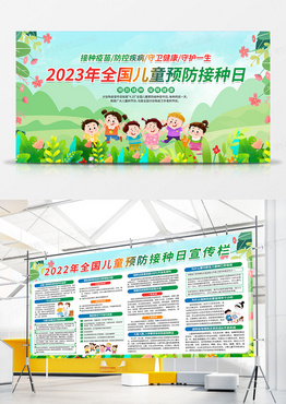 绿色简约时尚卡通全国儿童预防接种日宣传展板