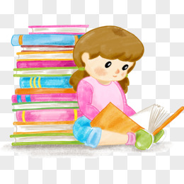 手绘卡通人物学生爬梯子读书创意微景观免抠元素