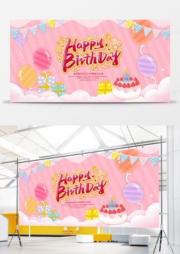 卡通简约生日快乐生日会展板