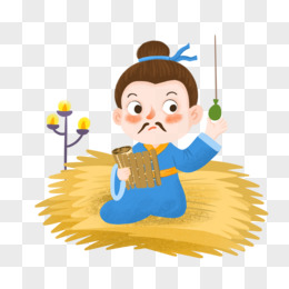卡通古代儿童坐在书桌上启蒙看书免抠元素