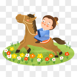 可爱男孩骑马卡通简约风小朋友玩耍元素
