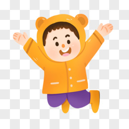 手绘卡通黄衣小男孩开心的跳起来免抠元素