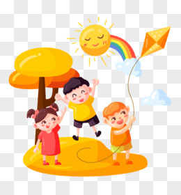 卡通手绘手拉手玩耍的小朋友免抠素材