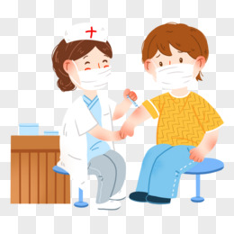 卡通手绘插画风护士给宝宝体检打疫苗元素