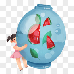 夏日清爽西瓜薄荷汽水插画场景元素