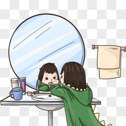 手绘卡通儿童刷牙照镜子元素