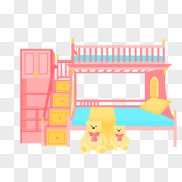 卡通手绘粉色双层床公主房免抠元素