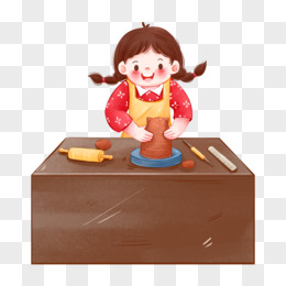 手绘女孩做泥塑插画元素