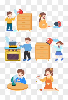 一组卡通扁平风矢量儿童各类烫伤合集元素
