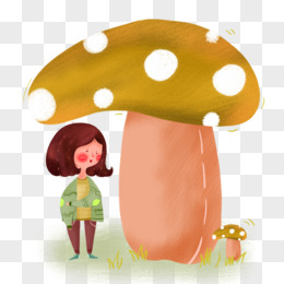 卡通可爱小女孩秋季蘑菇植物