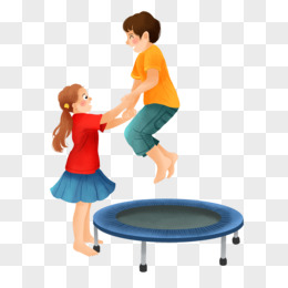 卡通手绘小朋友玩蹦床场景元素