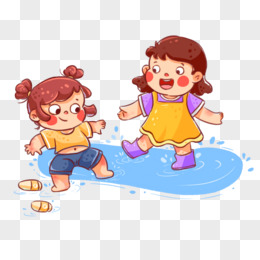 卡通两个小孩踩水玩耍插画免抠元素