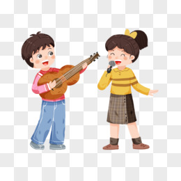 手绘卡通儿童双人弹唱元素