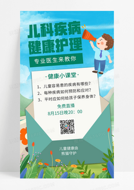 绿色卡通儿童疾病护理健康小课堂手机海报