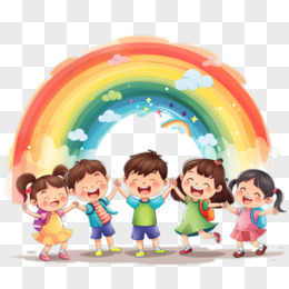 手绘卡通彩虹可爱的男孩女孩免抠元素