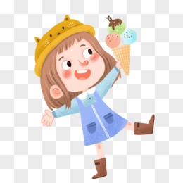 卡通手绘可爱的小女孩吃冰冷饮免抠元素